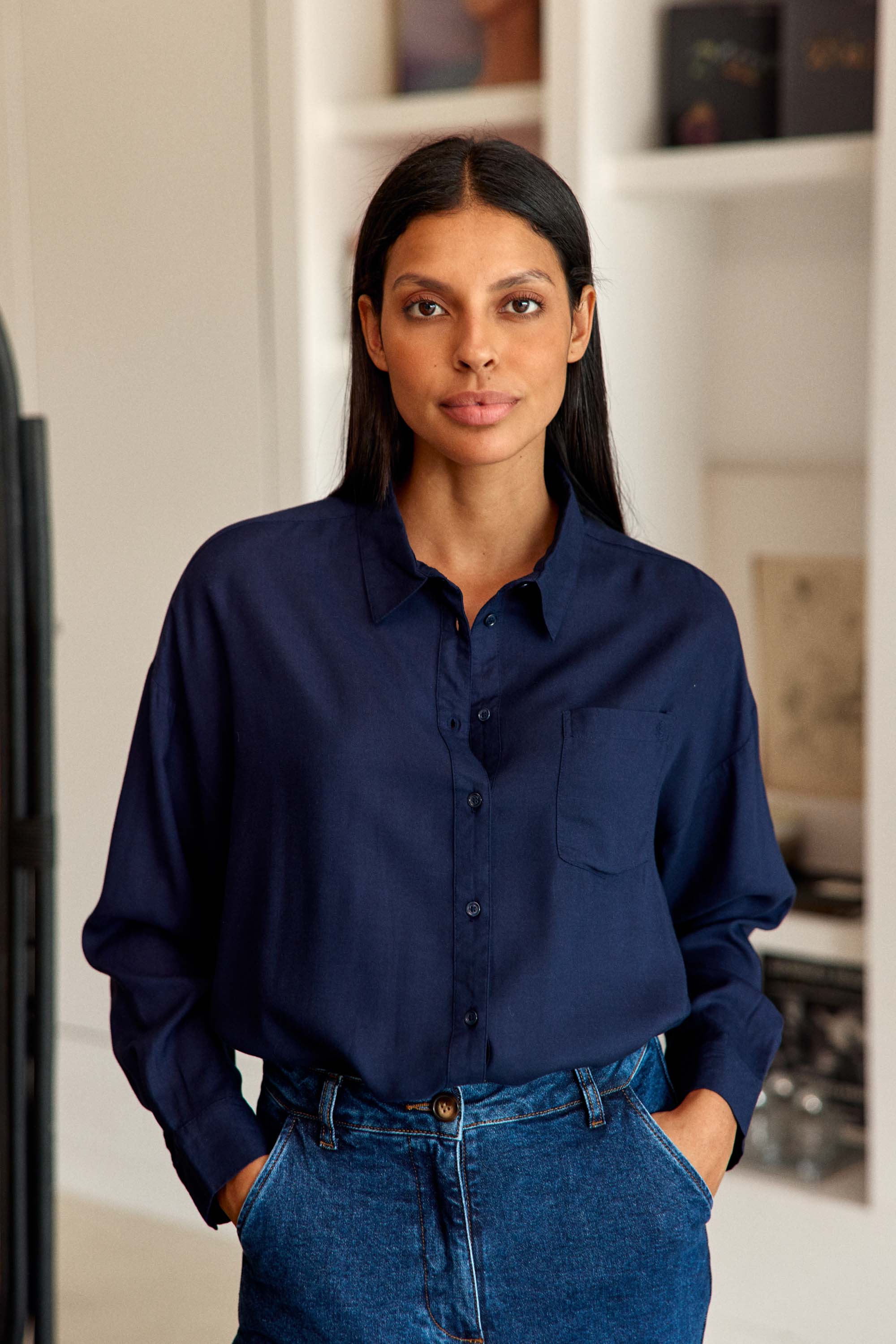 Chanice. le chemisier fluide en viscose. alliant simplicité et élégance avec sa coupe droite et sa poche poitrine pratique.