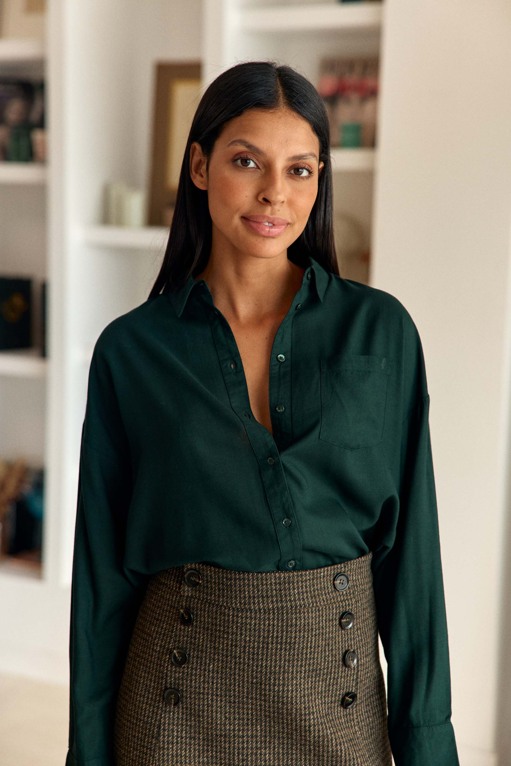 Chanice. le chemisier fluide en viscose. alliant simplicité et élégance avec sa coupe droite et sa poche poitrine pratique.