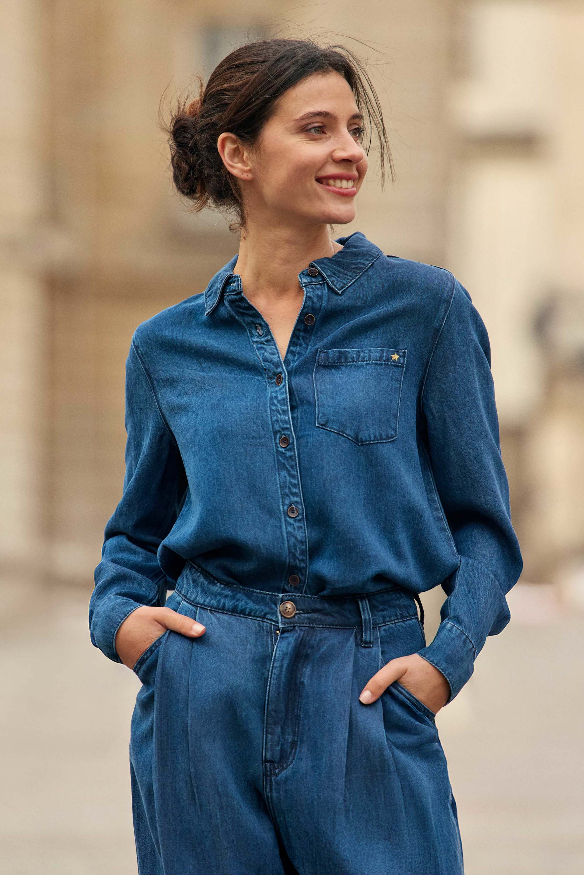 Le chemisier Clem mise sur une coupe droite en lyocell. avec col classique. détails boutonnés et une poche plaquée devant.