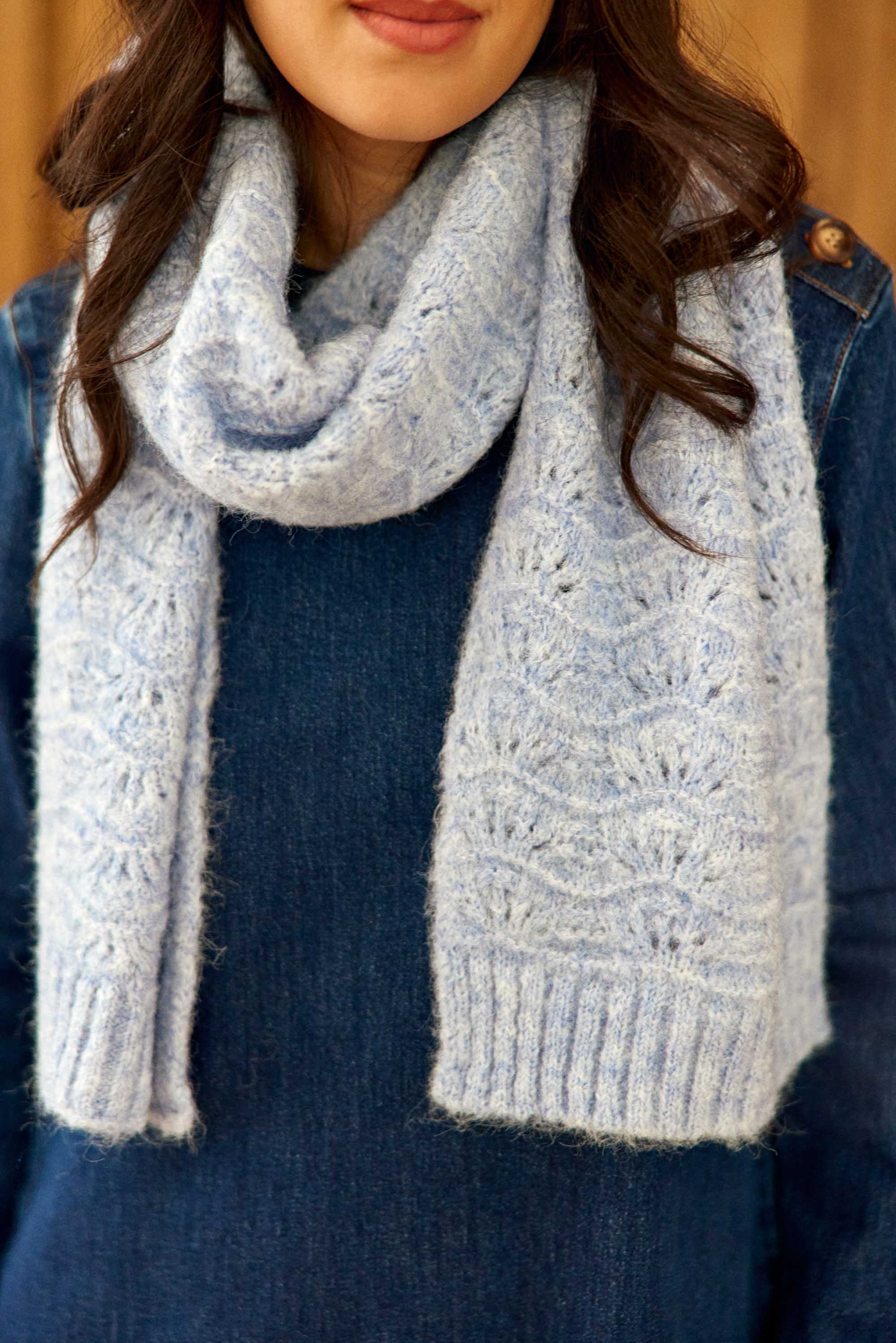 Aven. une écharpe douce et légère en point fantaisie ajouré. offrant une texture délicate et un style raffiné.