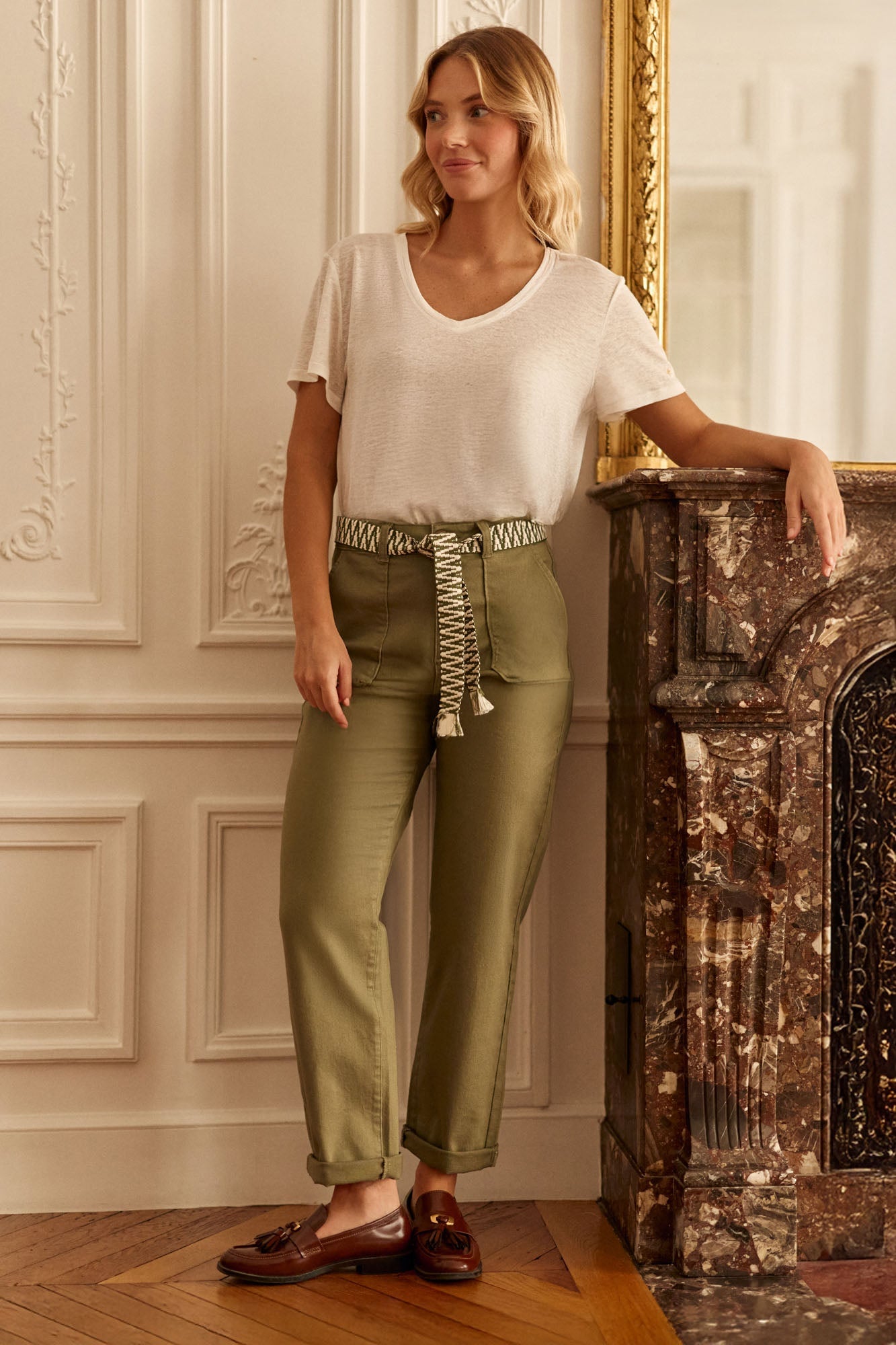 Le pantalon Marisol. l'allure subtilement structurée rehaussée d'une ceinture iconique.