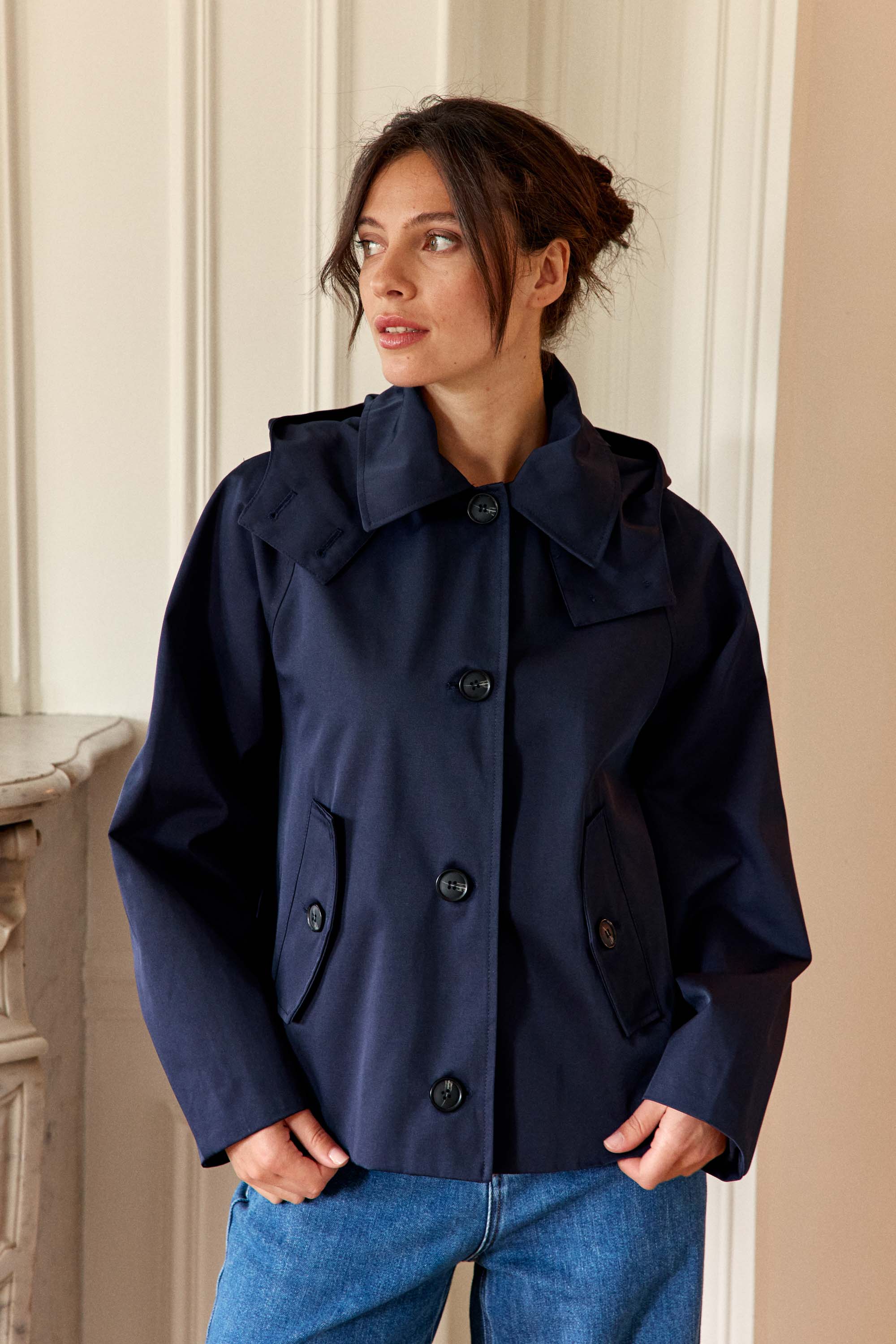 Nolan. la parka courte au volume trapèze et à la capuche amovible. pensée pour allier allure féminine et esprit pratique.