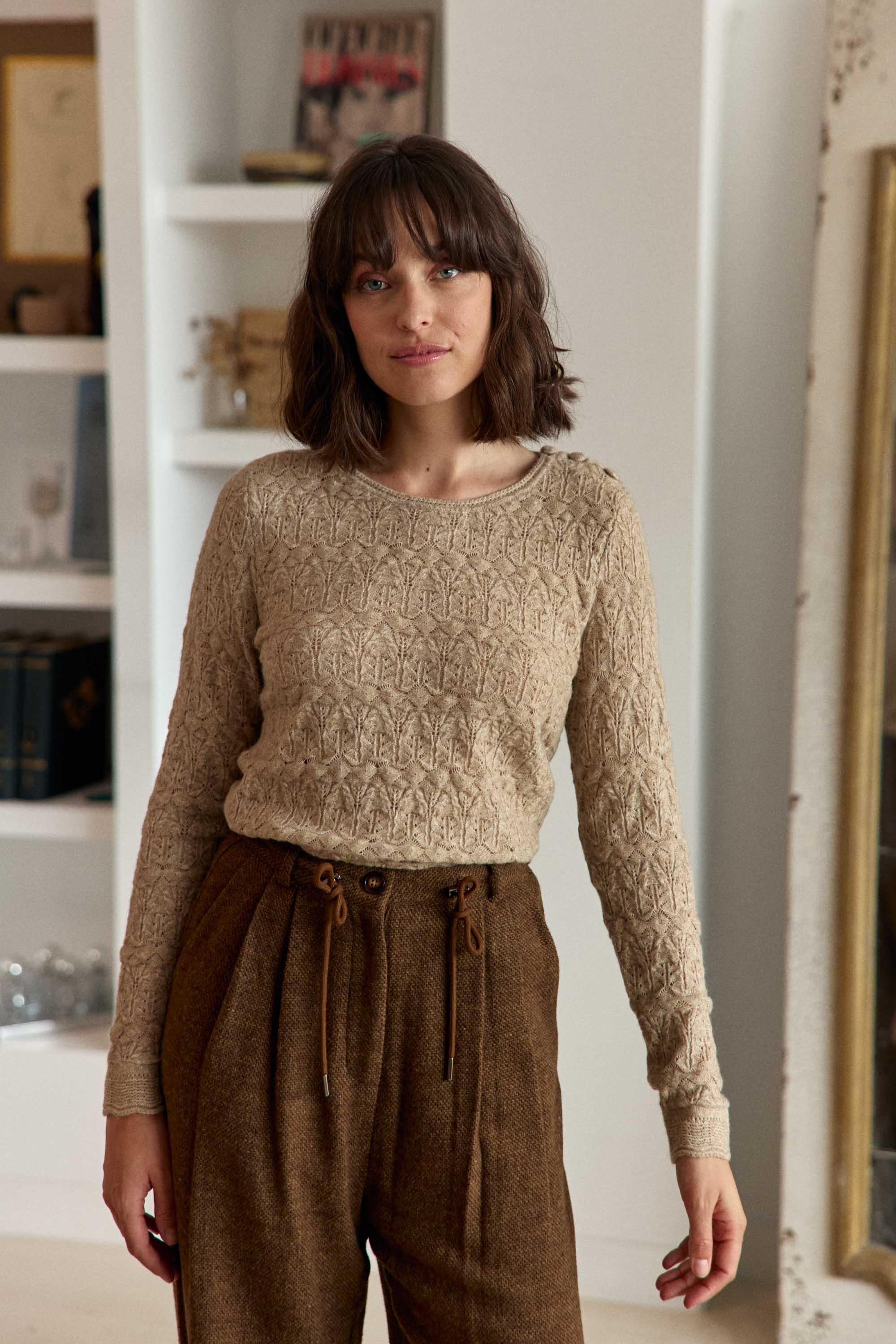 Mayson. le pull droit en maille douce avec point fantaisie. élégant et confortable avec son encolure ronde et ses manches longues.