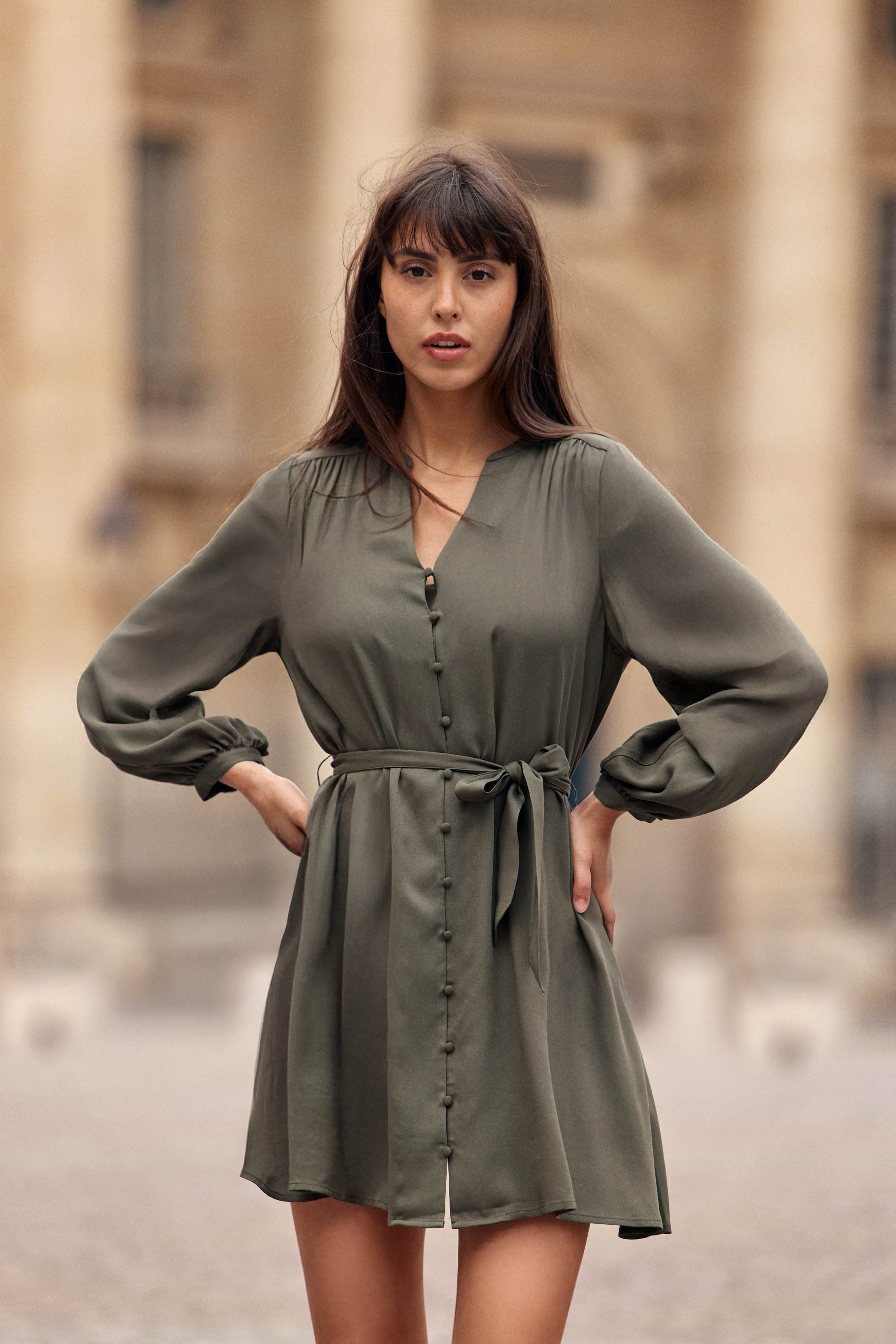 Ruyan. une robe fluide qui mêle élégance et détails délicats.