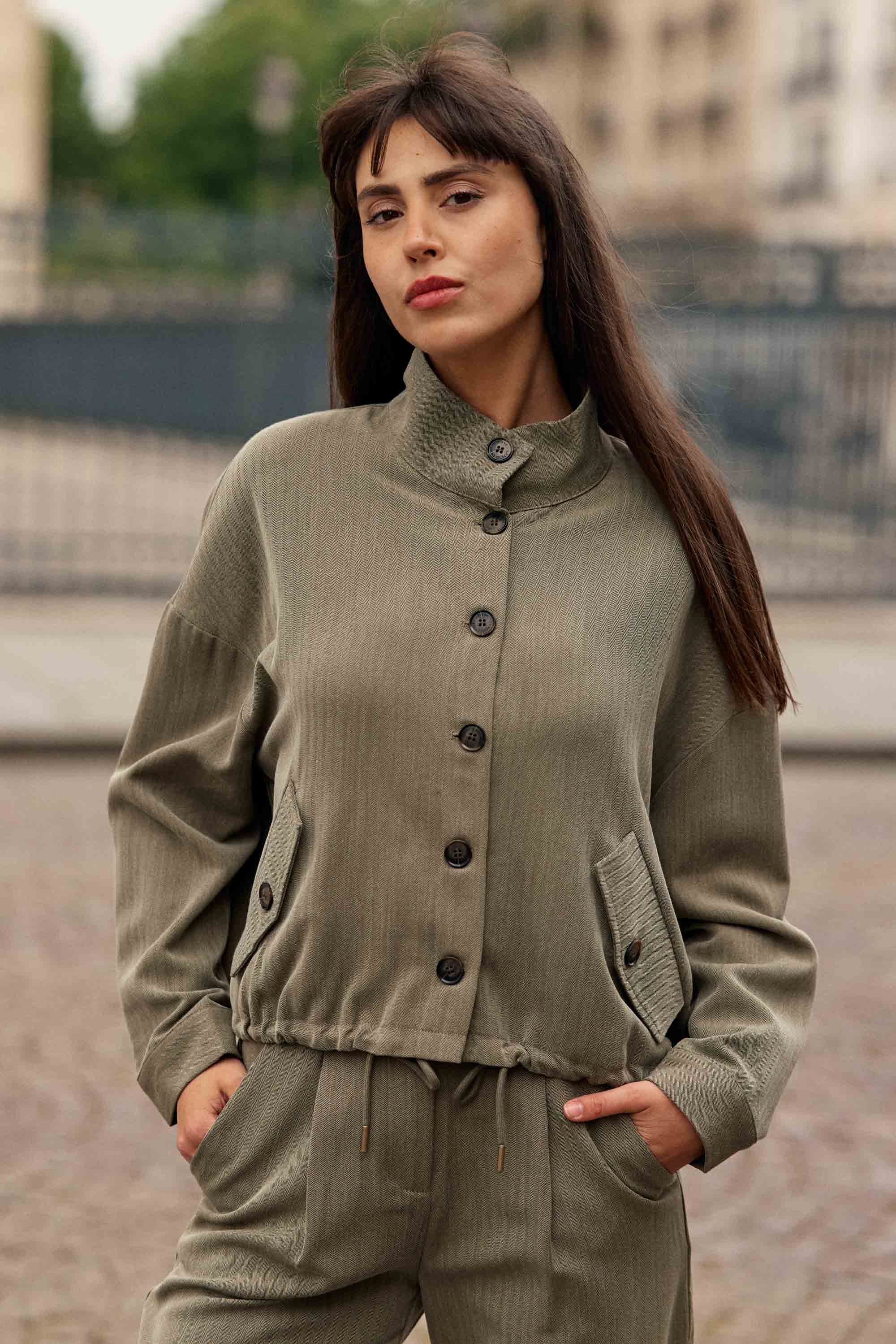 Vely. la veste oversize à l'esprit contemporain. alliant confort et style avec son tissage chevron et son col montant.